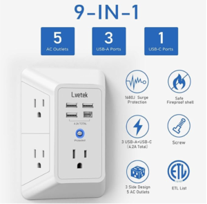 One of the most essential items for any traveler is an adapter plug. This handy device allows you to charge your electronics and use them in different countries, without worrying about compatibility issues. I found this 9-IN-1 very useful, and I recommend it for you. It is available on amazon.